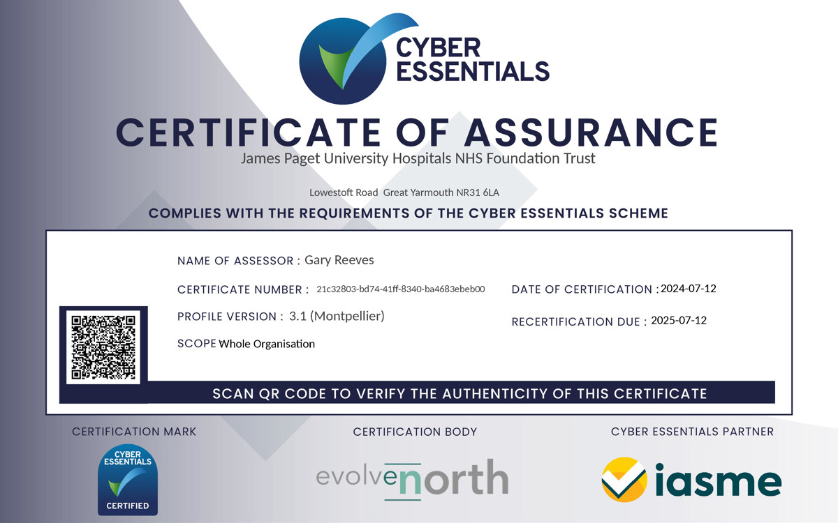 In addition to this the Trust has gained Cyber Essentials Certification which provides further assurance regarding Information Security.