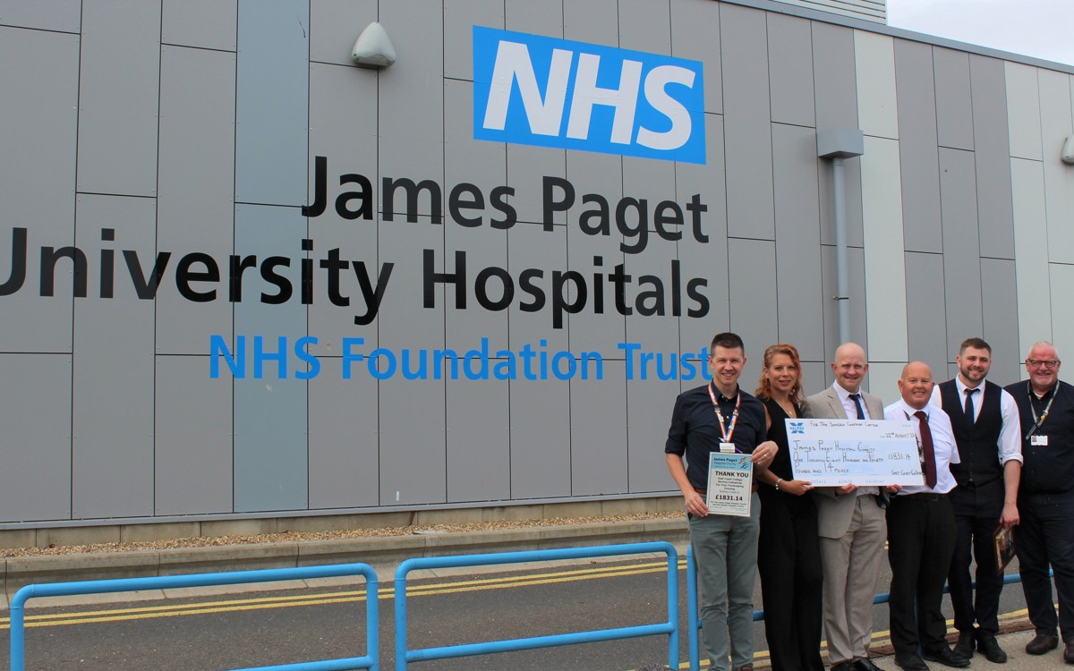 Our photo shows Paul from our James Paget Hospital Charity receiving the funds from Zoë Harding, Imperial Owner Grant Smith and Head Executive Chef Peter Clarke, and East Coast College lecturers Chef David Patterson and Stewart Battrick.