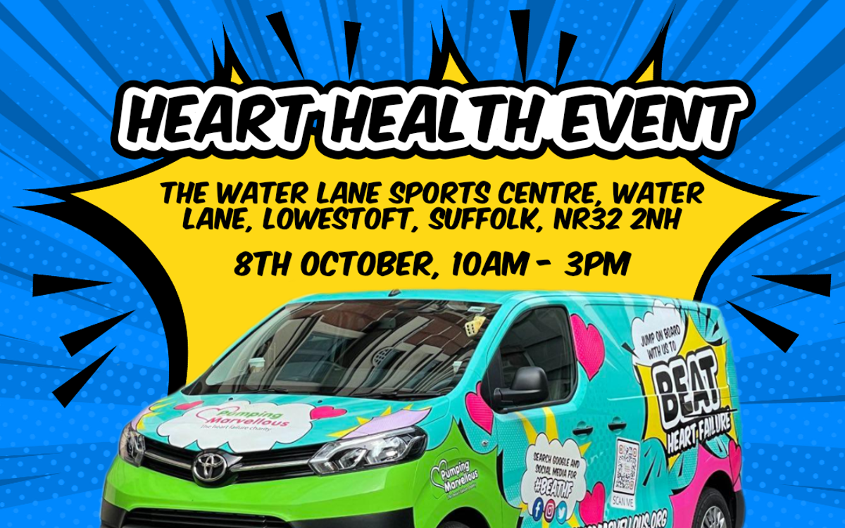 The local events, which will be held in Lowestoft on Wednesday 8 October and in Great Yarmouth on Thursday 9 October, follow the success of a day at The Forum in Norwich earlier this year, where local health agencies teamed up with Pumping Marvellous, the national heart failure charity, and other organisations, to offer heart health advice and screening. More than 450 people were screened during the day, which aimed to identify and help potential undiagnosed heart failure and atrial fibrillation patients.