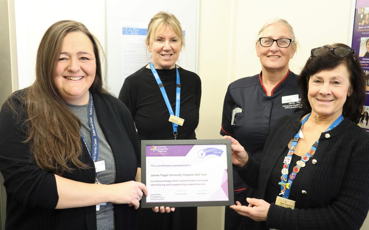 Amanda Hood, Head of Patient Experience and Engagement, said; “The accreditation must be renewed every two years to ensure that carer awareness and support is embedded and continues within the organisation, and we’re delighted to say that the James Paget has again achieved this.”